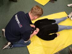 Daraufhin zeigte Norbert wie man die stabile Seitenlage und eine Herzdruckmassage durchführt und einen Helm eines Bewusstlosen Motorradfahrer entfernt.