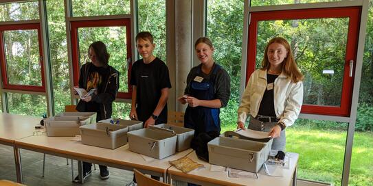 Den nächsten Tag gab es dann eine Schnitzeljagd in der wir mit einer mysteriösen Schatzkarte und einem Fragebogen verschiedene Personen bei INTERTEC-Hess aufsuchen und Fragen stellen sollten. Sobald wir die einzelnen Personen an den Punkten 1-4 auf der Karte abgefragt hatten war das X in der Kantine. Dort fanden wir Miniboxen mit Schlössern daran, wovor jeder einen Brief mit Karteikarten darin fand. Darauf waren die gleichen Fragen vom Fragebogen mit Fotos von den Personen den wir diese gestellt hatten. Die Karten waren nummeriert von 1-4, genauso hatten die 4 Antwortmöglichkeiten darauf verschiedene Nummern, die uns den Code für das Schloss an den MINIBOXEN verrieten, wenn wir sie richtig beantworten. Nach einiger Überlegung und Besprechung untereinander hat jeder Lehrling seine eigene Box geknackt und bekam viele kleine Geschenke, wie ein niedliches Pinguin Plüschtier, INTERTEC-Blöcke, USB-Sticks und Tassen. Am Ende des Tages konnten wir dann alle mit unseren eigenen INTERTEC-Hess MINIBOXEN nach Hause gehen.