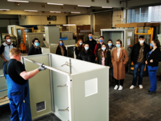 Der Dezember 2021 war unser Produktschulungsmonat. Wir hatten die Möglichkeit all unsere Produkte von Beginn an der Produktion bis hin zum Endprodukt zu begleiten. Los ging es mit der Kastenfertigung, dort haben wir einen Einblick bekommen, wie unsere Kästen mit Hilfe der Kastenpresse und anschließender Endmontage zu einem fertigen Kasten werden. Auch in der SAFE LINK-Abteilung konnten wir alle Arbeitsschritte aus nächster Nähe betrachten. Ein weiterer Teil unserer Produktschulungen war der Schrankbau, dort wurde uns gezeigt, wie aus vielen Einzelteilen ein kompletter Schrank entsteht. Auch unsere THERMOTEX-Abteilung, der Shelterbau, die interne Logistik und eine Physikstunde von unserem Geschäftsführer Martin Hess standen auf dem Programm.